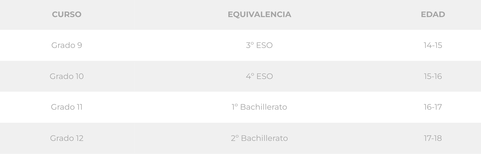EQUIVALENCIAS DE AÑOS ACADÉMICOS EN ESTADOS UNIDOS